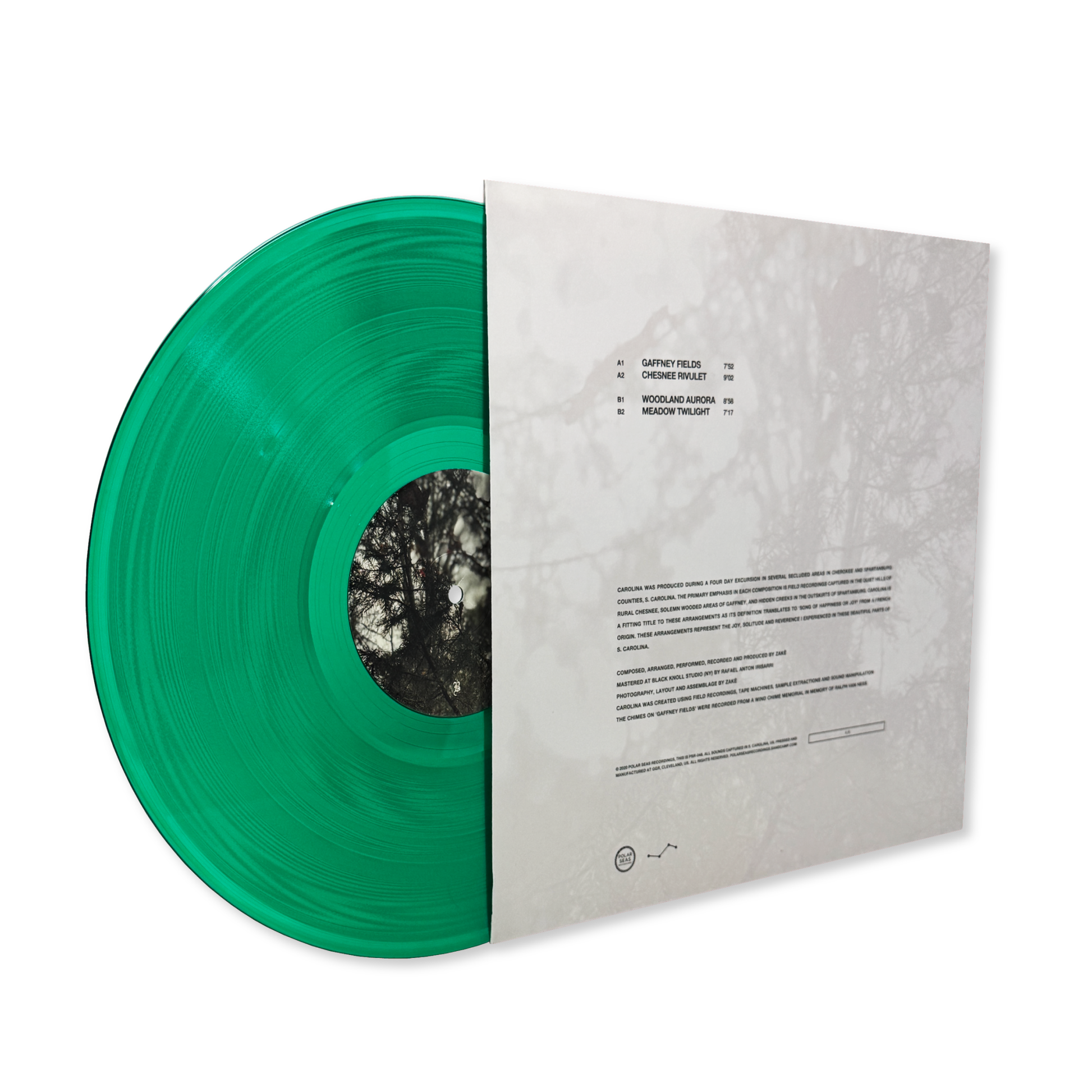 "Carolina was recorded and produced during "a four-day excursion in several secluded areas" in South Carolina. As a result, listeners can expect to hear babbling brooks, birdsong and the gentle rustling of leaves beneath zakè's alluring mixture of enveloping ambient chords, unearthly drone tones, opaque electronics and slowly-shifting, heavily processed neo-classical movements. The results are hugely immersive and undeniably enjoyable, with each of the tracks delivering a head-in-the-clouds journey that ripples with becalmed, atmospheric intent. In other words, it's the kind of ambient music you can get lost in. More please!" -Juno Records